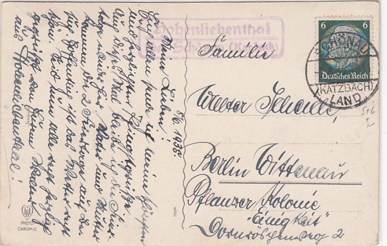 Landpoststempel Hohenliebenthal Schönau AK Pfingsten