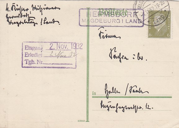 Landpoststempel auf Brief Hermsdorf Magdeburg