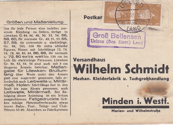 Landpoststempel Hösseringen Uelzen 193Kaffee Hag Sammelmarke vor dem zweiten WK . ; , guter Zu
