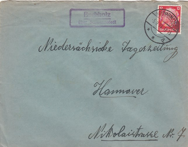 Landpoststempel auf Brief Gehrden Himmelpforten Kreis Stade