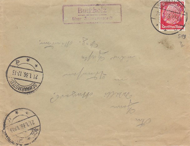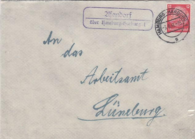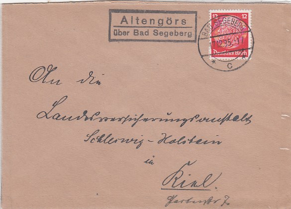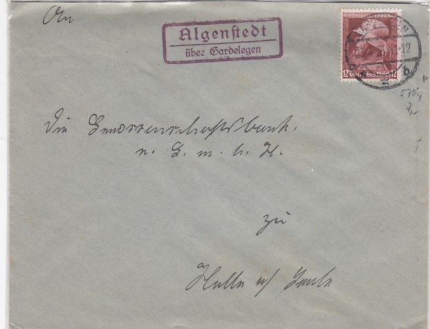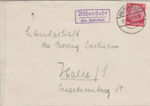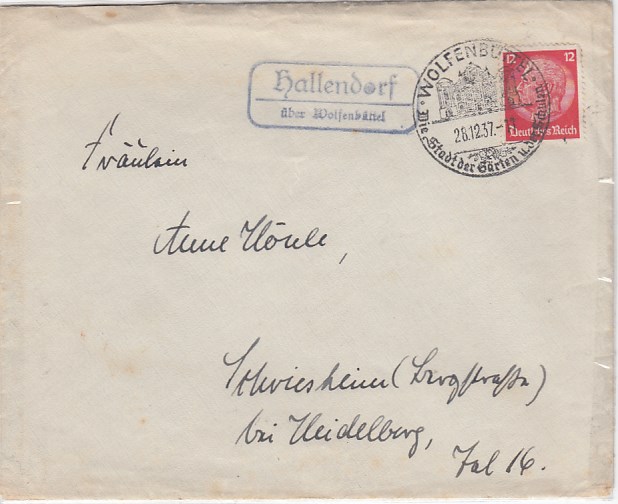 Landpoststempel auf Brief Hallendorf Wolfenbüttel 1937