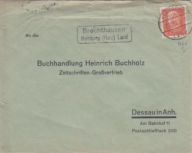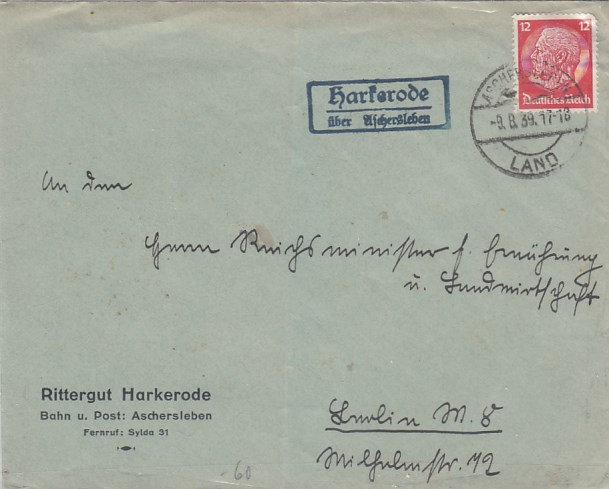 Landpoststempel auf Brief Harkerode Aschersleben Geschäftspost Rittergut