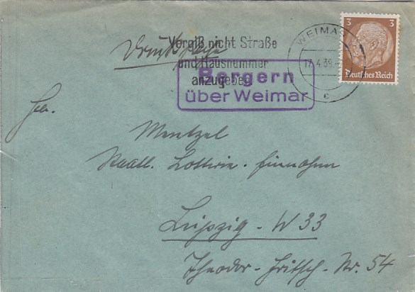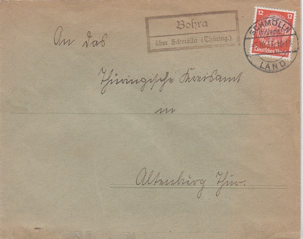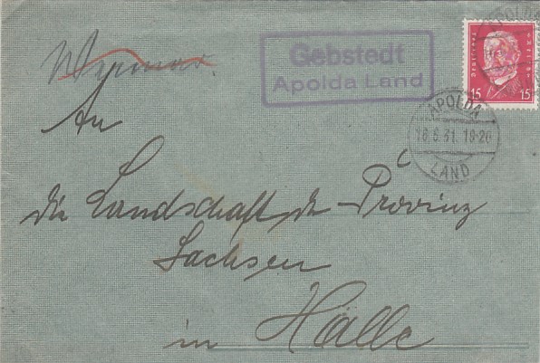 Landpoststempel auf Brief Gebstedt Apolda Land 1931