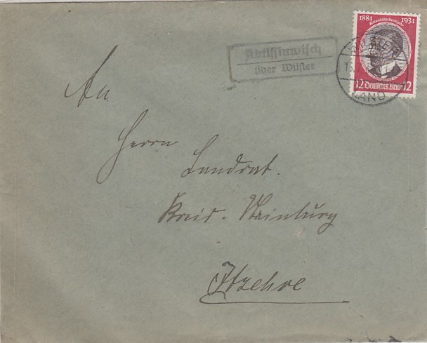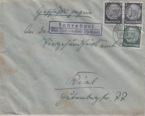 Landpoststempel auf Brief Fahrsdorf Fahrdorf Hohenwestedt Holstein