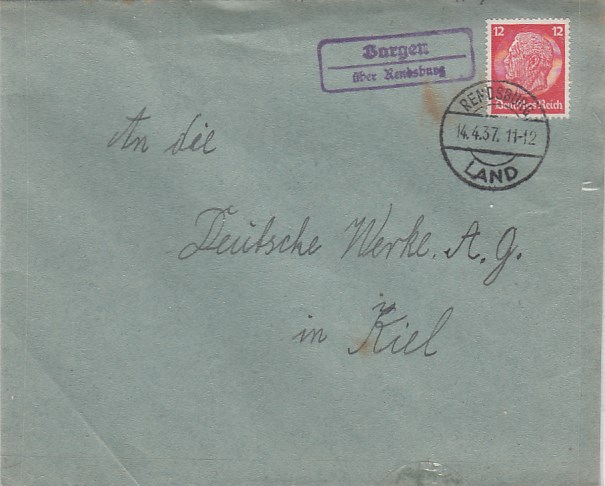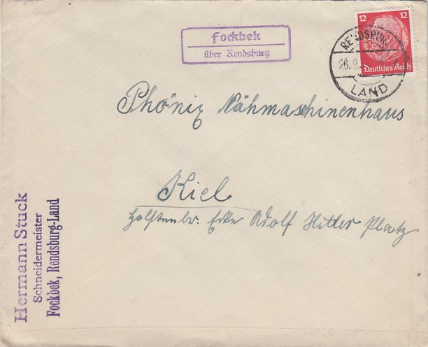 Landpoststempel auf Brief Fockbek Rendsburg