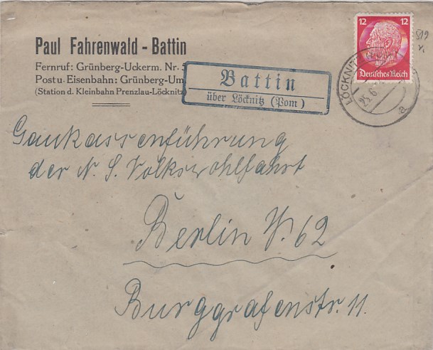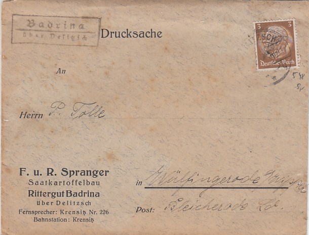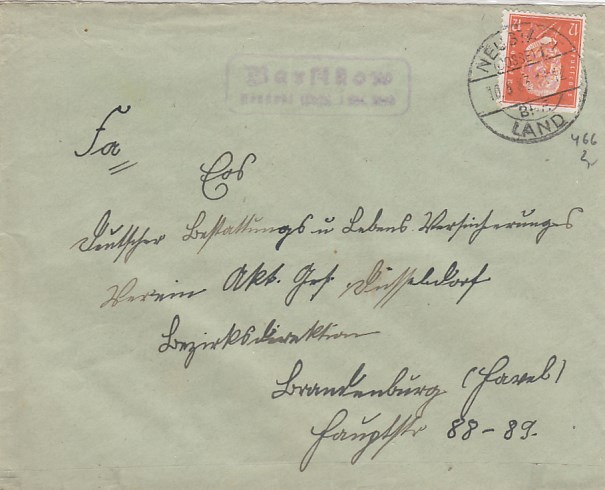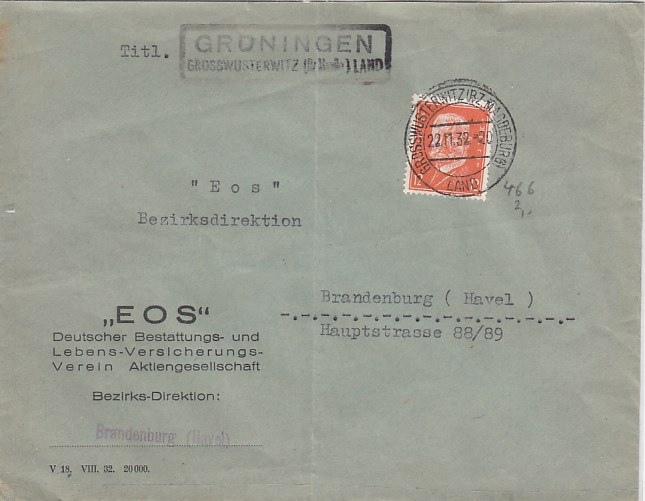 Landpoststempel auf Brief Grüningen Grosswusterwitz Geschäftspost Brandenburg Havel