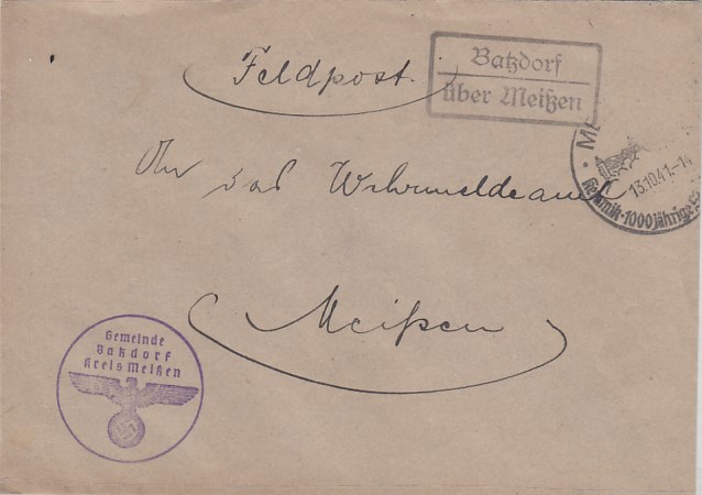Landpoststempel auf Brief Batzdorf Meißen Feldpoststempel 1941