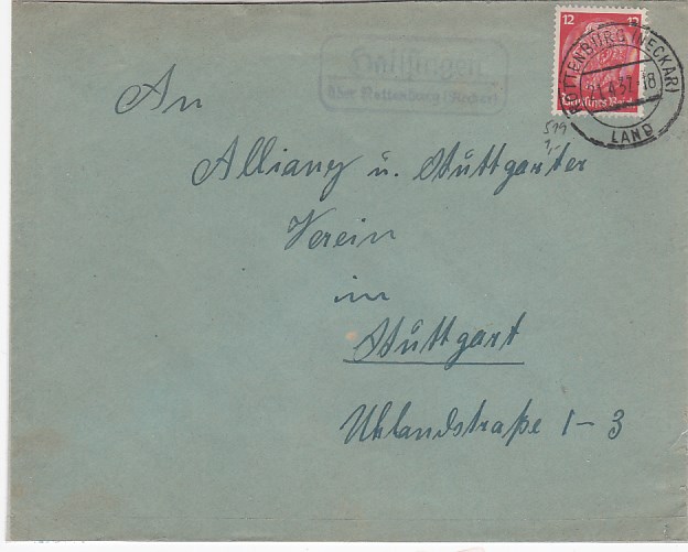 Landpoststempel auf Brief Hailfingen Rottenburg Neckar 1937