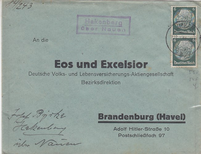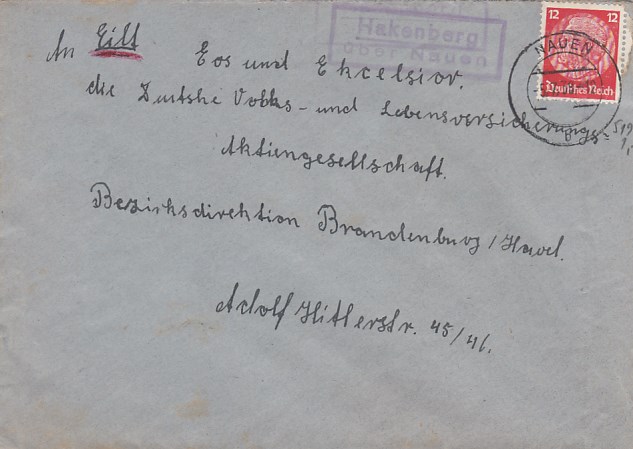 Landpoststempel auf Brief Hakenberg Nauen im Havelland Geschäftspost Brandenburg