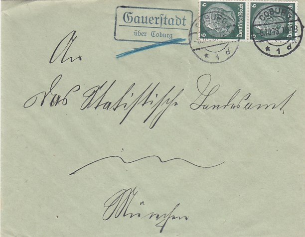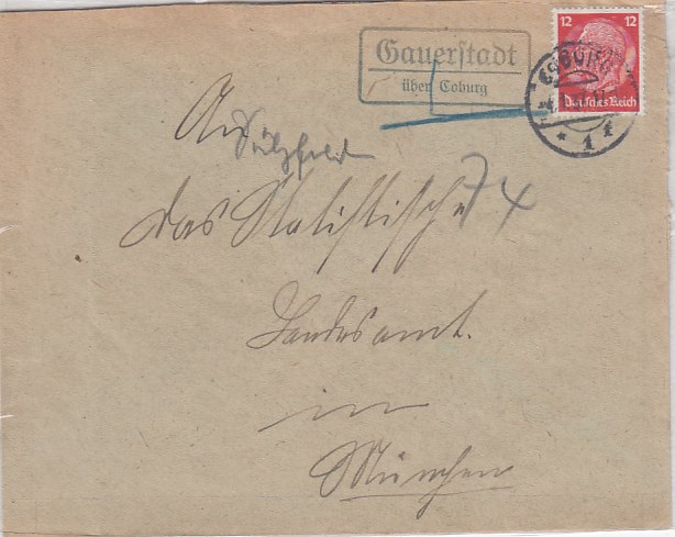 Landpoststempel auf Brief Sauerstadt Coburg