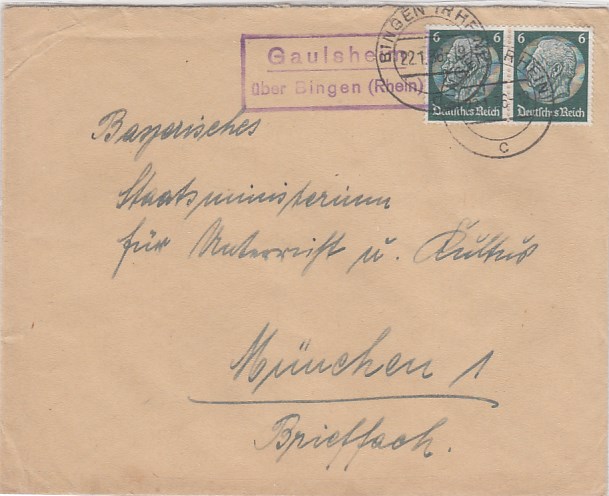 Landpoststempel auf Brief Gaulsheim Bingen Rhein