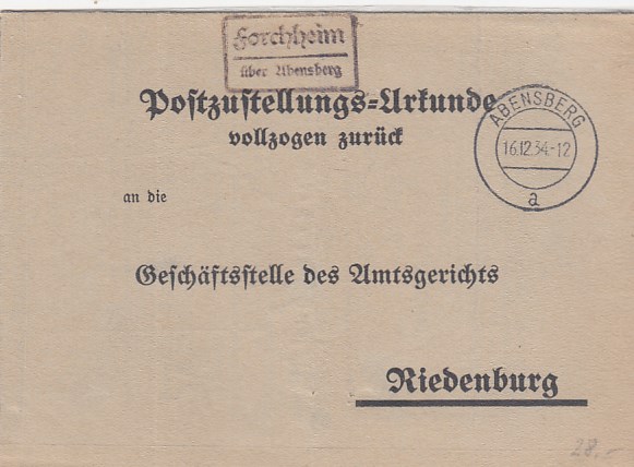 Landpoststempel auf Brief Forchheim Abensberg Amtsgericht Riedenburg Feldpoststempel 1934