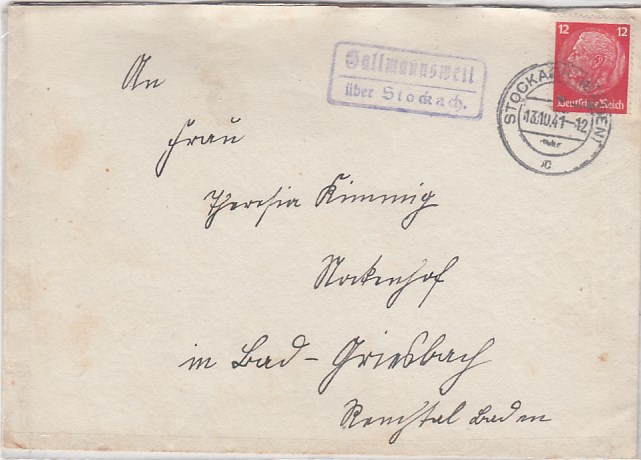 Landpoststempel auf Brief Gallmannsweil Stockach