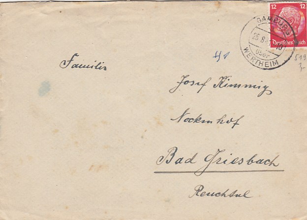 Landpoststempel auf Brief Gamburg Wertheim