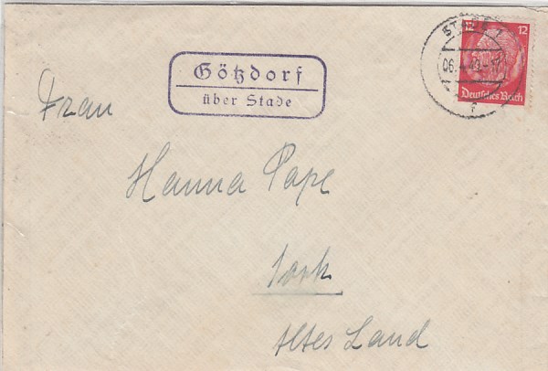 Landpoststempel auf Brief Götzdorf Stade