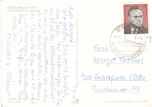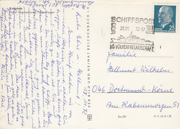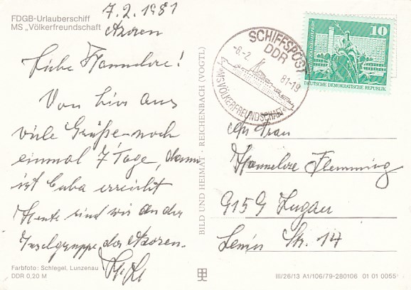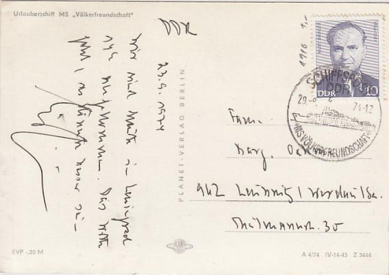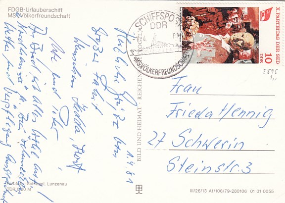Deutsche Schiffspost Stempel DDR Völkerfreundschaft Urlauberschiff