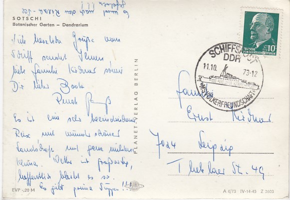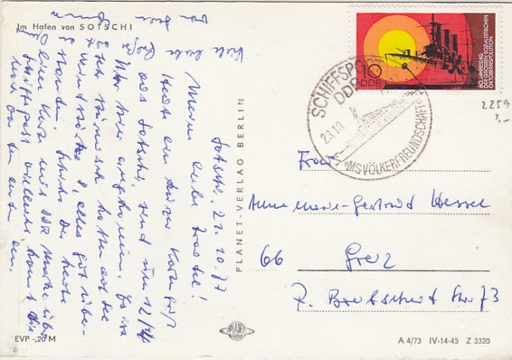 Deutsche Schiffspost Stempel DDR Völkerfreundschaft Urlauberschiff Sotschi Russland