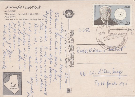 Deutsche Schiffspost Stempel DDR Völkerfreundschaft Urlauberschiff Algerie Algerien