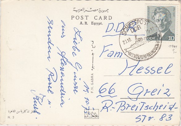 Deutsche Schiffspost Stempel DDR Völkerfreundschaft Urlauberschiff Cairo Egypten