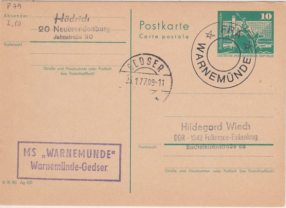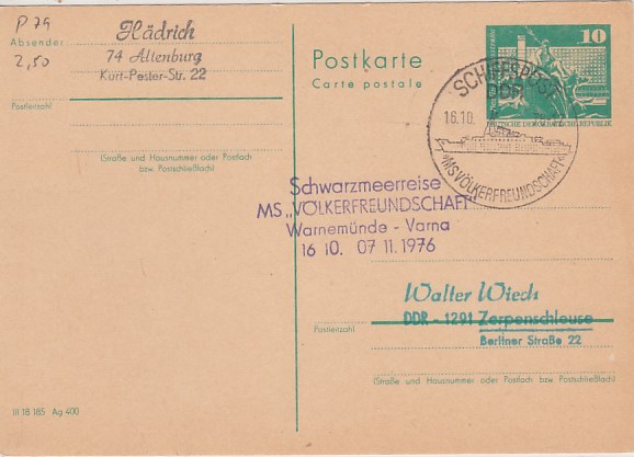 Deutsche Schiffspost Stempel DDR Völkerfreundschaft Urlauberschiff Warnemünde Varna
