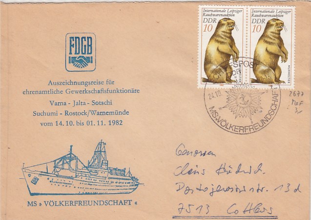 Deutsche Schiffspost Stempel DDR Völkerfreundschaft Urlauberschiff Brief FDGB Varna Jalta Sotsch
