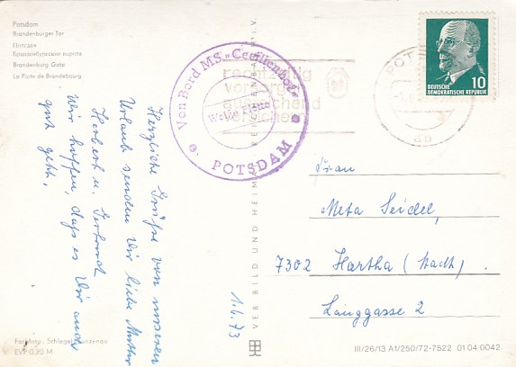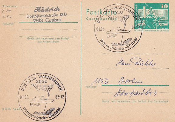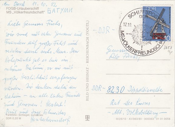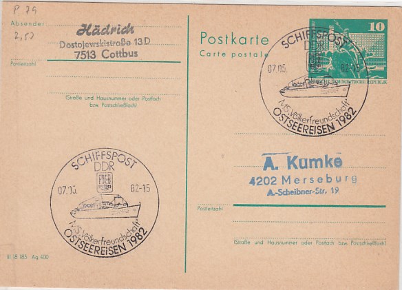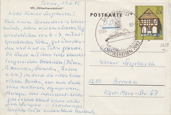 Deutsche Schiffspost Stempel DDR Völkerfreundschaft Urlauberschiff Osterreisen 1982