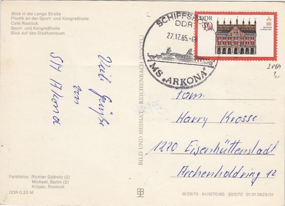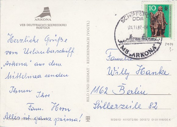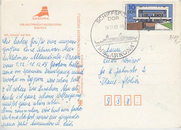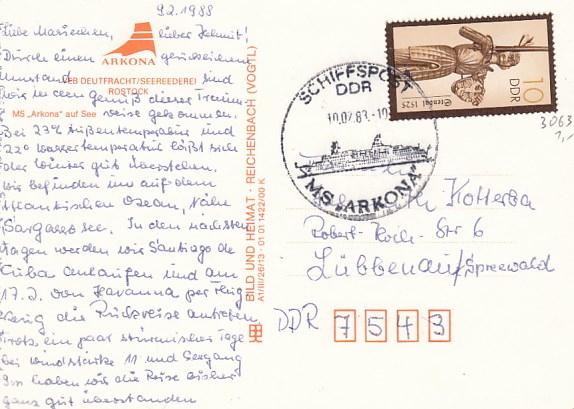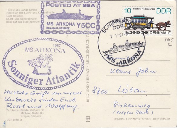 Deutsche Schiffspost Stempel DDR Urlauberschiff Arkona Rostock