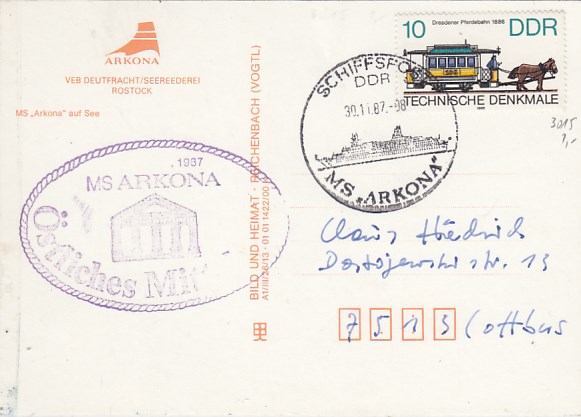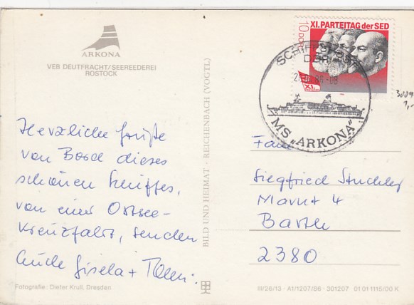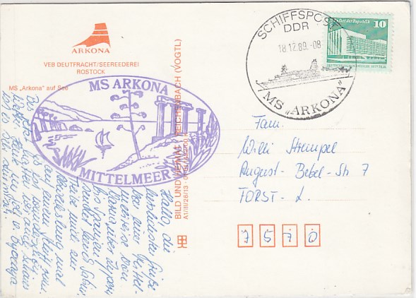 Deutsche Schiffspost Stempel DDR Urlauberschiff Arkona