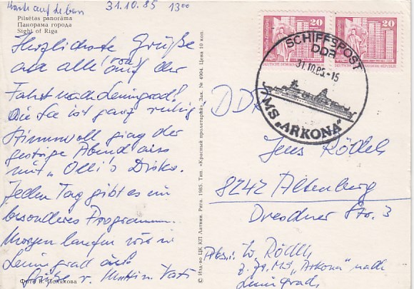 Deutsche Schiffspost Stempel DDR Urlauberschiff Arkona Riga Lettland