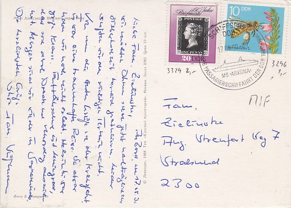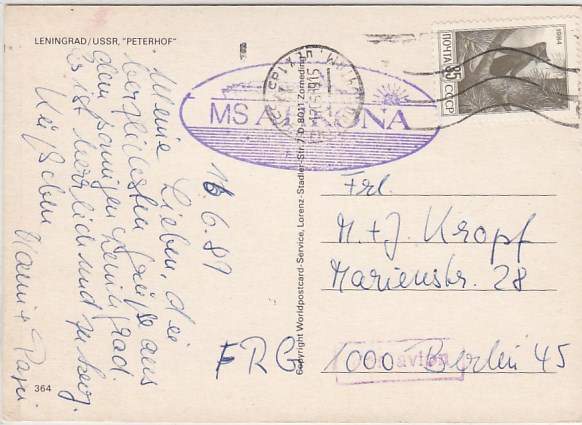 Deutsche Schiffspost Stempel DDR Urlauberschiff Arkona Leningrad Russland