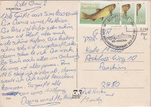 Deutsche Schiffspost Stempel DDR Urlauberschiff Arkona Siracusa