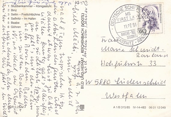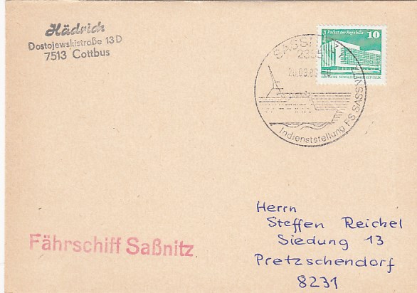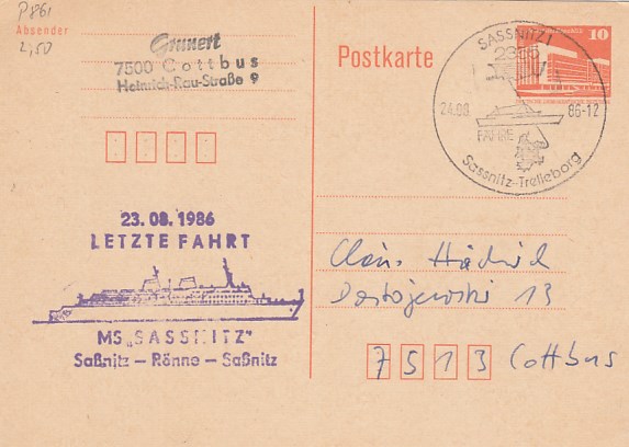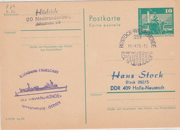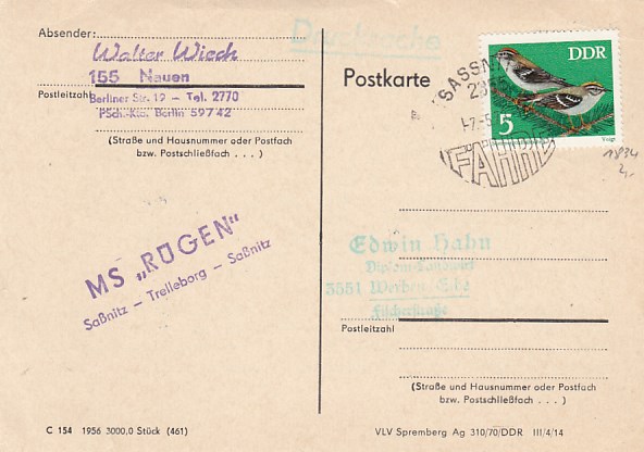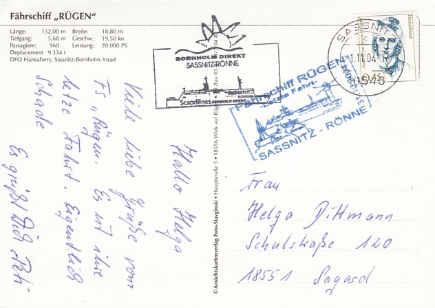 Deutsche Schiffspost Stempel DDR Fährschiff Saßnitz Rönne Sassnitz