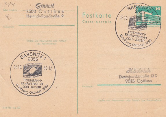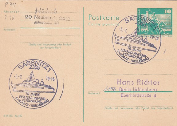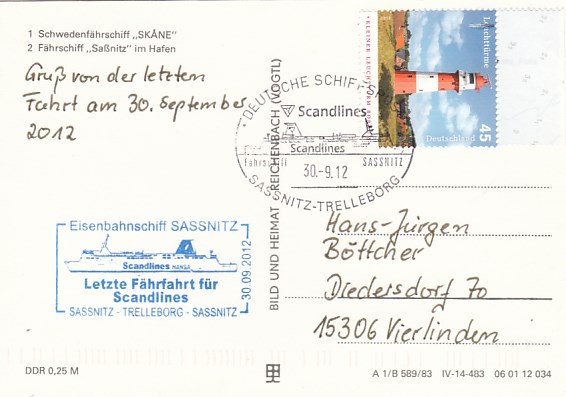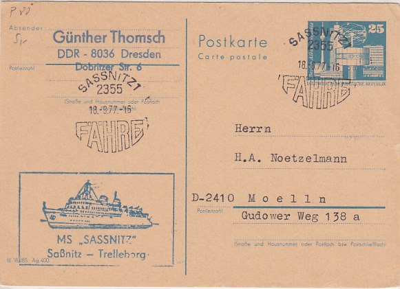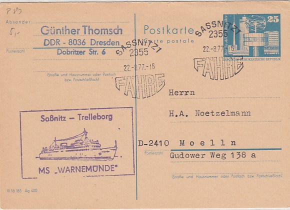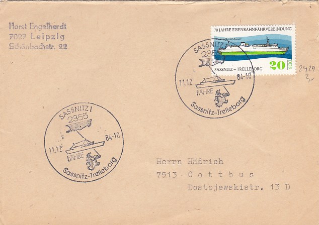 Deutsche Schiffspost Stempel DDR Fährschiff Saßnitz Trelleborg Sassnitz Eisenbahnfähre