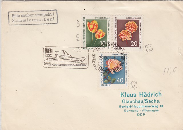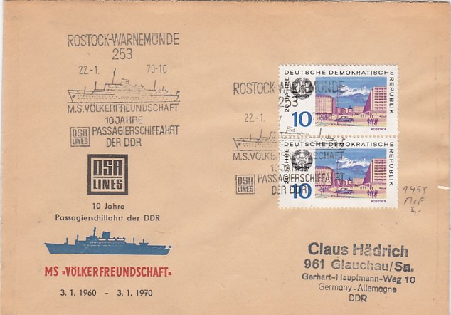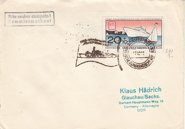 Deutsche Schiffspost Stempel DDR Völkerfreundschaft Urlauberschiff 1966