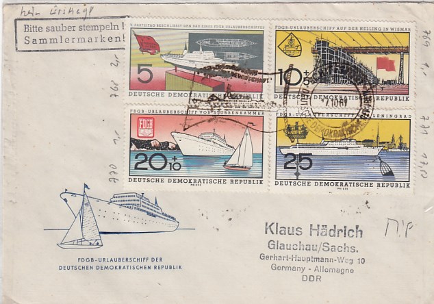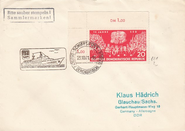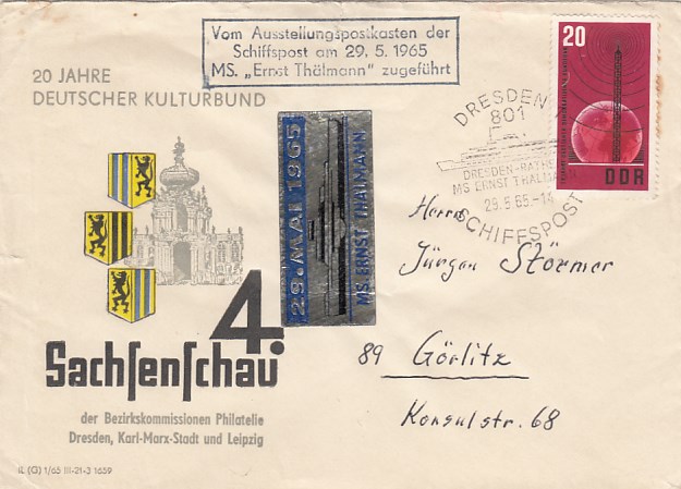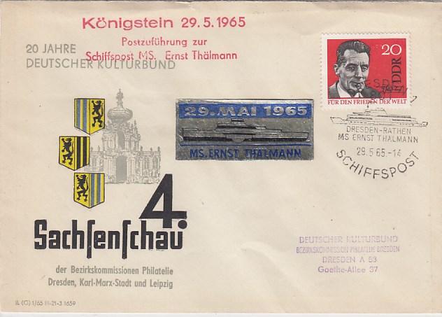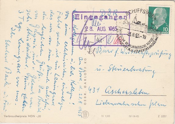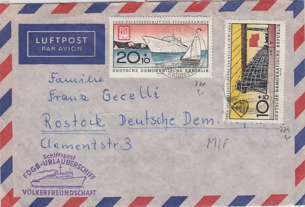 Deutsche Schiffspost Stempel DDR Völkerfreundschaft Urlauberschiff 1965