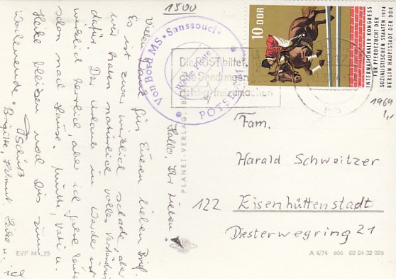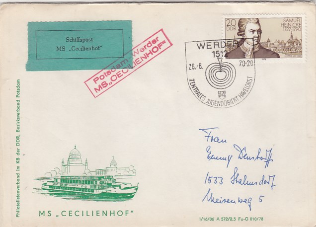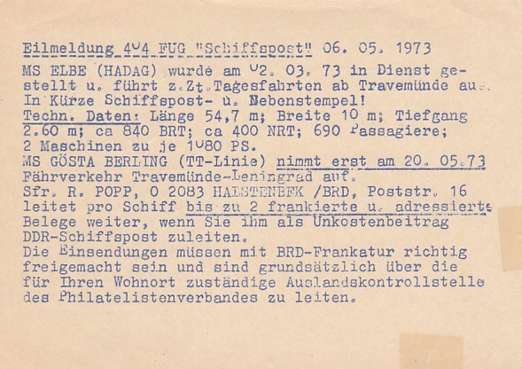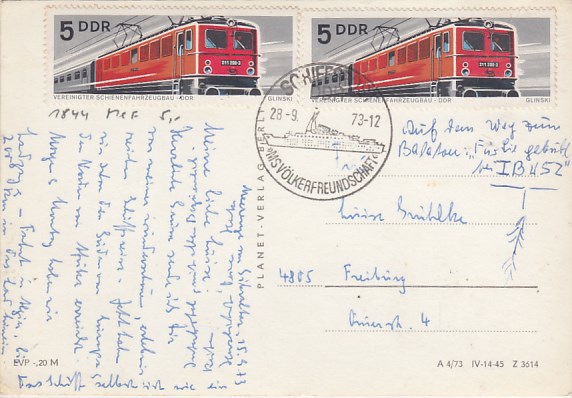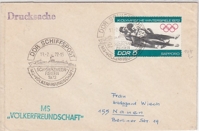 Deutsche Schiffspost Stempel DDR Völkerfreundschaft Freundschaftsfahrt nach Berlin Lichtenberg