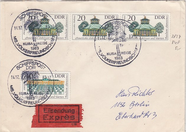 Deutsche Schiffspost Stempel DDR Völkerfreundschaft Urlauberschiff Kuba Cuba Varadero