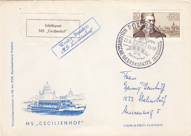 Schiffs Stempel Von Bord MS Cecilienhof Potsdam