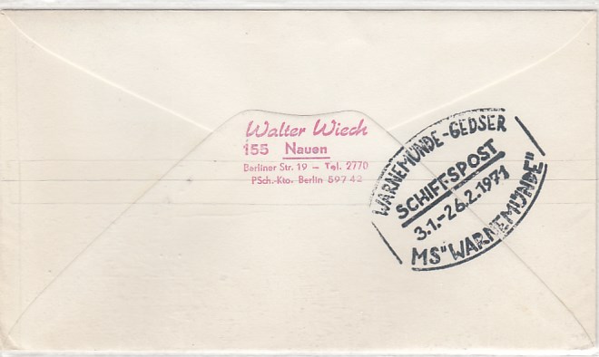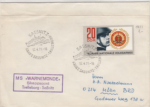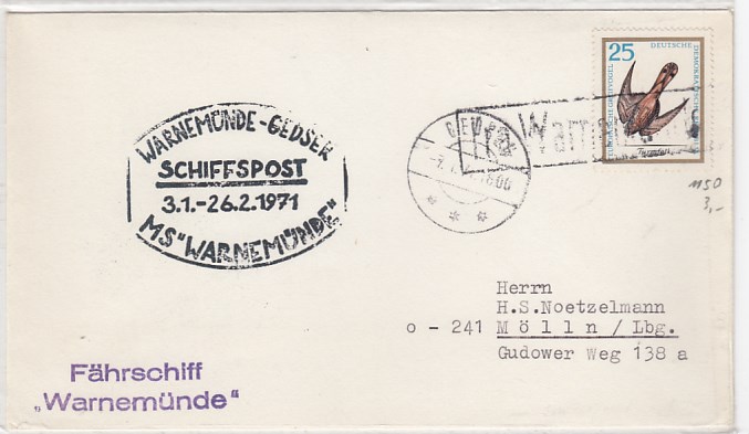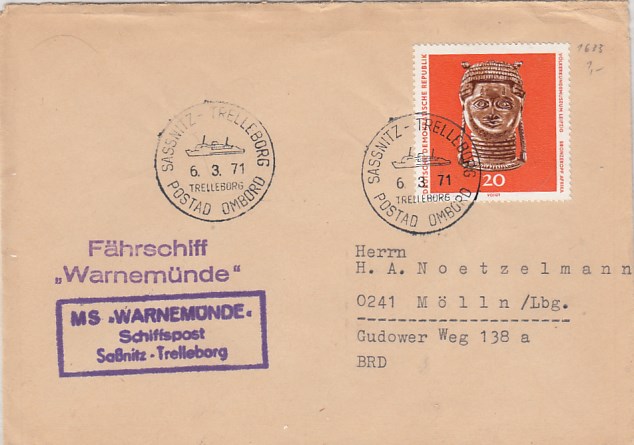 Deutsche Schiffspost Stempel DDR Fähre Warnemünde Gedser 1971 Brief