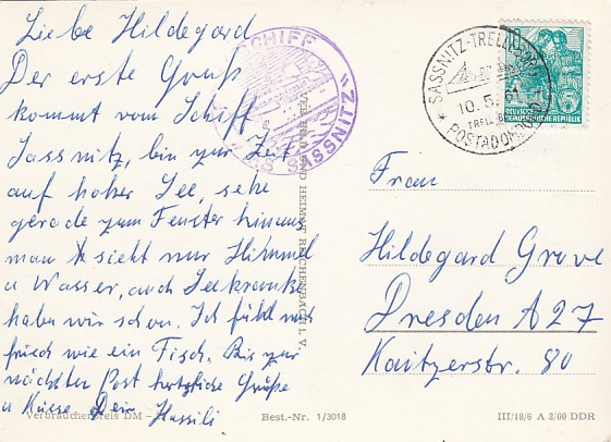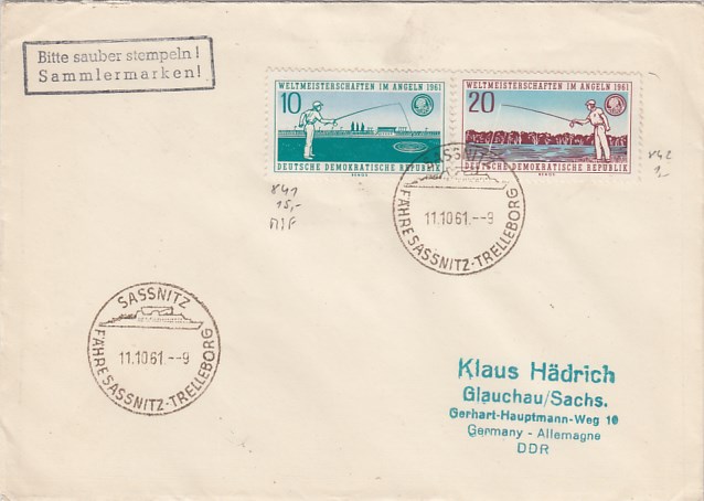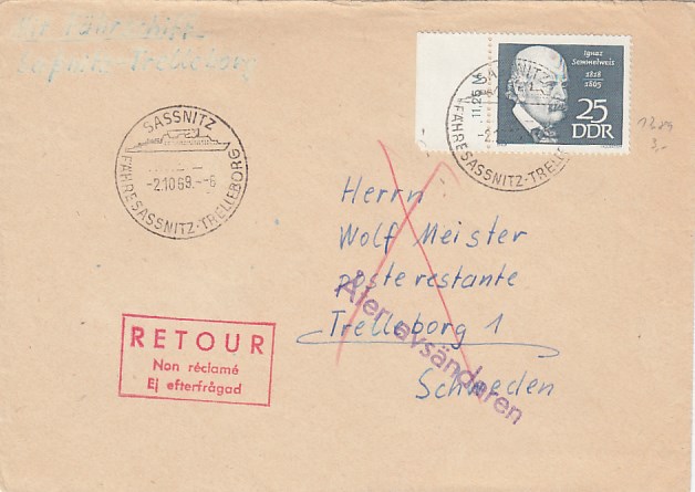 Deutsche Schiffspost Stempel DDR Fährschiff Saßnitz Trelleborg Sassnitz 1961
