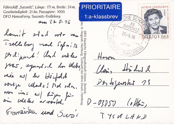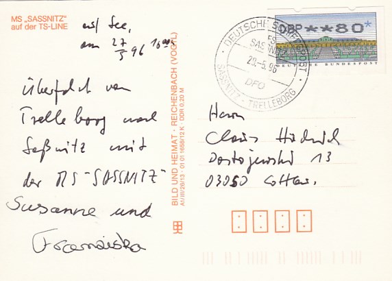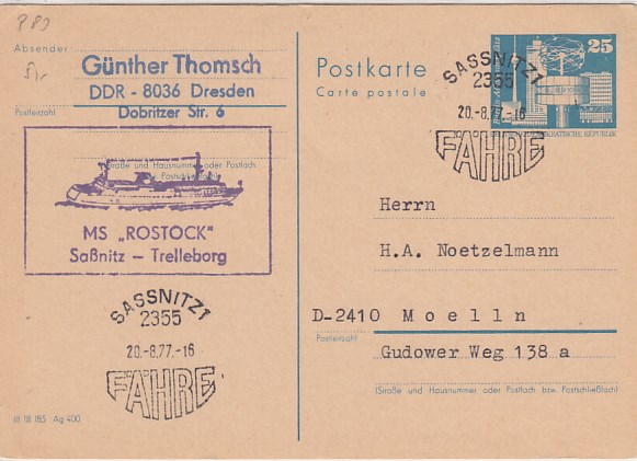 Deutsche Schiffspost Stempel DDR Fährschiff Saßnitz Trelleborg Sassnitz