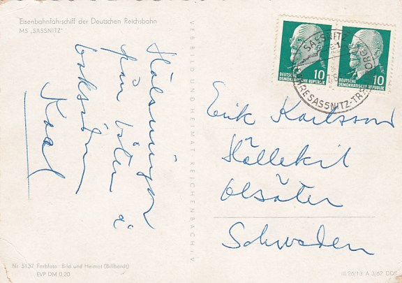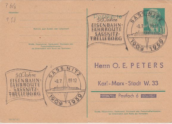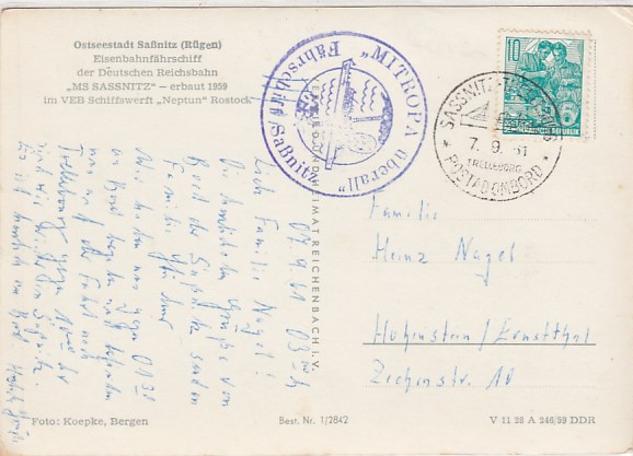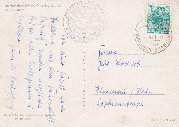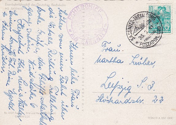 Deutsche Schiffspost Stempel DDR Fährschiff Saßnitz Trelleborg Sassnitz Eisenbahn Fähre 1961