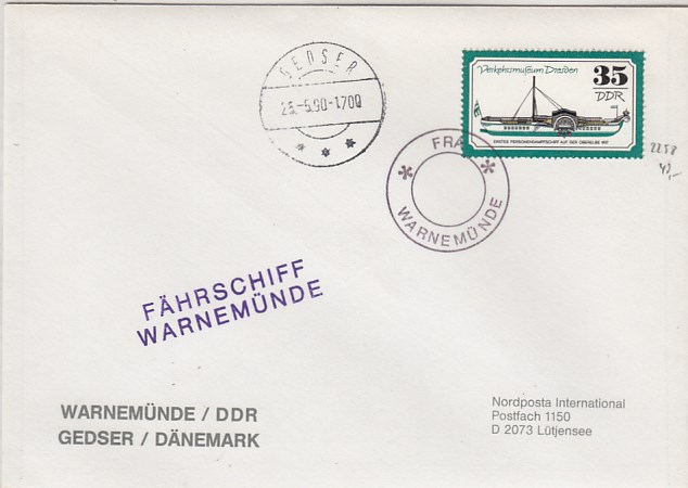 Deutsche Schiffspost Stempel DDR Fähre Warnemünde Gedser Brief