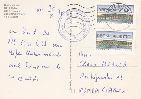 Schiffs Stempel MS Lilvi-Aht Malta AK Ueckermünde