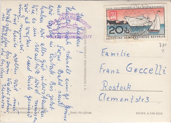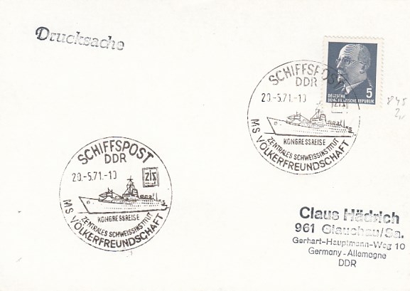 Deutsche Schiffspost Stempel DDR Völkerfreundschaft Urlauberschiff Kongressreise