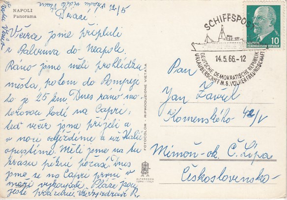 Deutsche Schiffspost Stempel DDR Völkerfreundschaft Urlauberschiff Napoli Italien