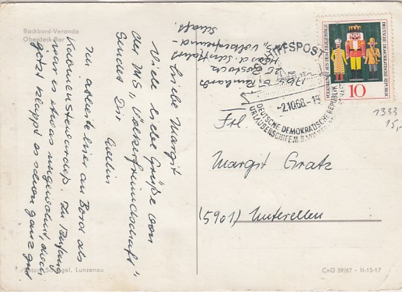 Deutsche Schiffspost Stempel DDR Völkerfreundschaft Urlauberschiff 1968