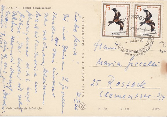Deutsche Schiffspost Stempel DDR Völkerfreundschaft Urlauberschiff Jalta