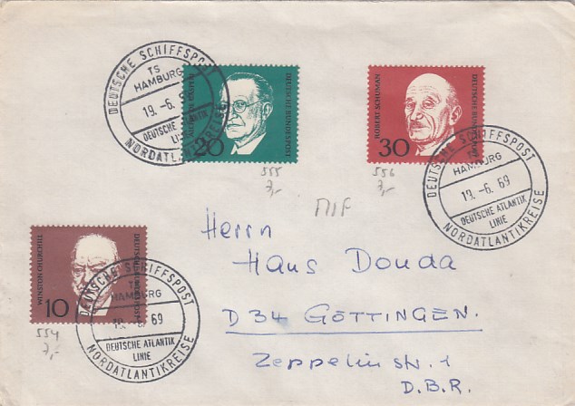 Deutsche Schiffspoststempel Norwegenfahrt 1969 TS Hamburg nach Göttingen