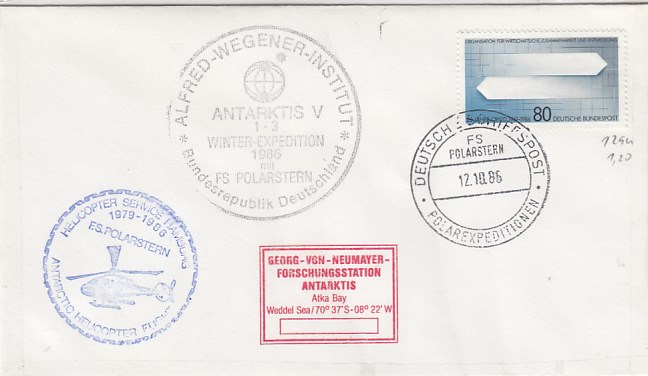 Deutsche Schiffspost Stempel auf Brief Polarexpedition Antarktis F.S.Polarstern 1986